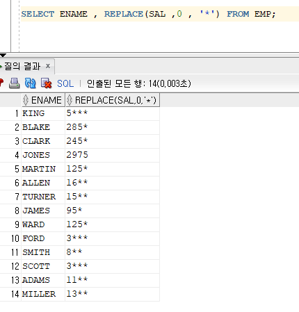 특정 철차를 다른 철자로 변경하기(REPLACE) 본문